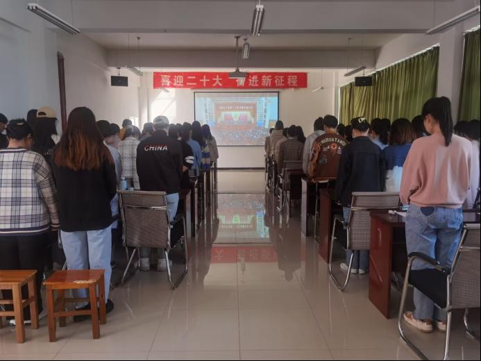 广大青年要坚定不移听党话、跟党走,怀抱梦想又脚踏实地,敢想敢为又善作善成,立志做有理想、敢担当、能吃苦、肯奋斗的新时代好青年,让青春在全面建设社会主义现代化国家的火热实践中线经绚放绚丽之花。总书记的话为我们作为学生引路人的高校教师指明了方向,同时也对我们的青年学子寄予了殷切希望。学生党员刘淑慧在现场观看了二十大党开幕会后说道,“作为一名学生党员,我深知应该加强自身的专业知识 ,提高自身的素养 ,在日常的生活中,跟随党的脚步不断前行,继续努力。”