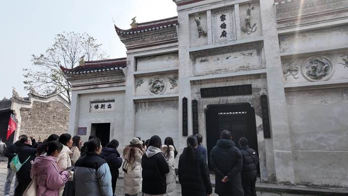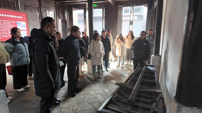仪式结束后,师生党员走进洪湖瞿家湾湘西革命根据地旧址参观。古老的街巷、斑驳的墙壁,处处留存着革命先辈们奋斗的痕迹。大家依次参观了旧址内的各个场馆,陈列的历史文物、珍贵照片以及详实的文献资料,生动地再现了当年革命斗争的艰苦卓绝。党员们认真聆听讲解员的讲解,不时驻足凝视,仿佛穿越时空,详读和细看革命先辈们在这里浴血奋战、团结抗敌以及根据地建设的珍贵文献资料,深刻感受到了他们为了民族独立和人民解放,不畏艰险、顽强拼搏的崇高精神。