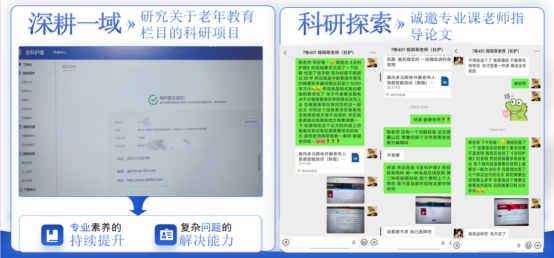 2025年,王淑娴主动对接专业课老师,围绕“老年教育”专栏开展科研探索。她作为第一作者编写论文向期刊投稿。
