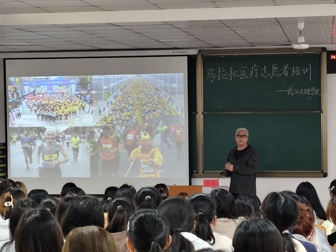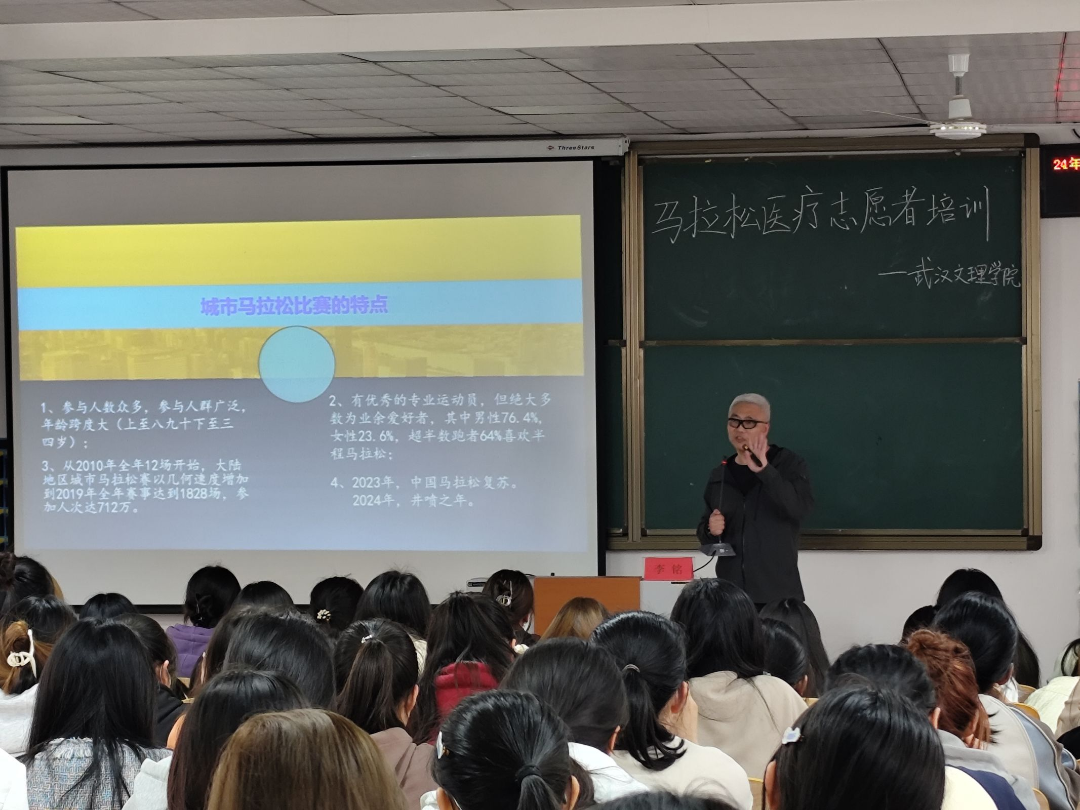 据悉:为了全面做好本次马拉松比赛保障工作,确保志愿者工作高效开展,保障运动员、志愿者自身以及社会群众的生命财产安全,展现志愿者的良好素质和工作能力,中国马拉松大满贯常务委员会委员、长江职业学院李铭老师于4月10日在yl6809永利官网集团4-422为yl6809永利集团医疗志愿者进行了专项青年医疗志愿者培训。yl6809永利集团志愿者会通过培训熟知了赛事内容、组织情况,明确了职责和工作纪律。
