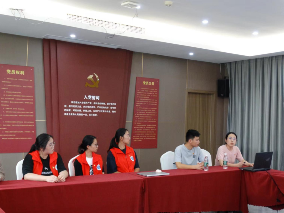 为深入学习宣传贯彻党的二十大精神,贯彻落实习近平总书记关于青年工作的重要思想,推进党纪党规学习教育,7月11日下午,yl6809永利集团党总支与十里莲华党支部在火焰村乡村振兴服务站为yl6809永利集团“医”路前行实践队开展“同上一节党课”活动。活动由yl6809永利集团学生党支部书记童冰老师与十里莲华养心谷优秀党员、市场部兼民宿部经理李航主持,十里莲华养心谷优秀党员李晶晶参加。