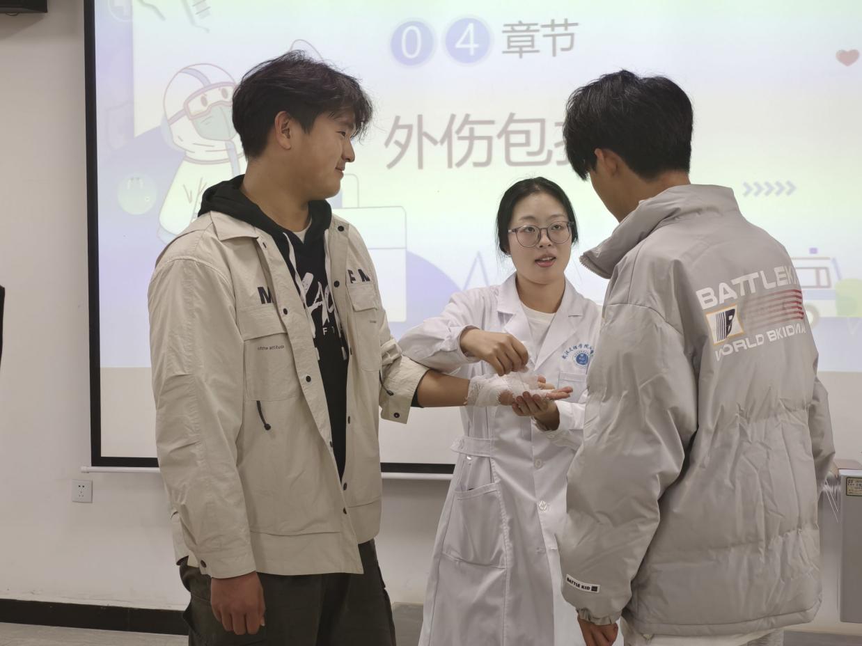 在学院党总支书记高伟的指导下,由李雨彤、林云茜、王茜等20多名医学生组成的“医说就懂”宣讲团队针对学院2024级1000多名学生展开了《病毒与冬季传染病预防知识》、《外伤紧急处置与包扎术》、《心肺复苏术急救技知识》、《七步洗手法》、《食物科普》等专题宣讲。