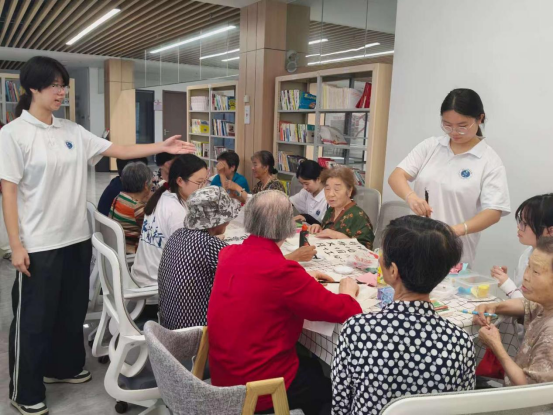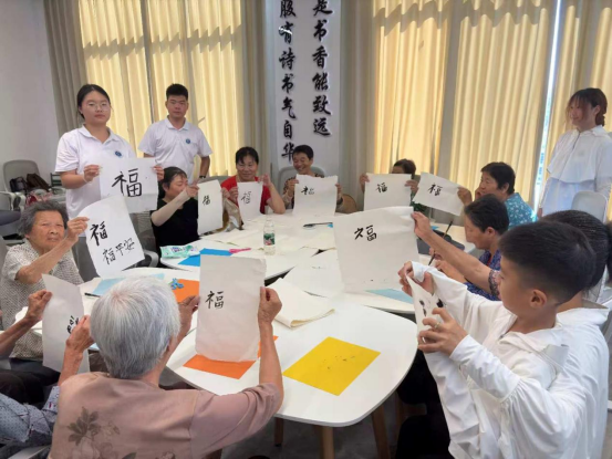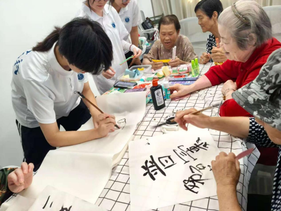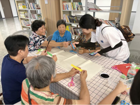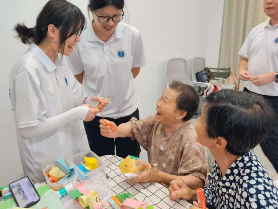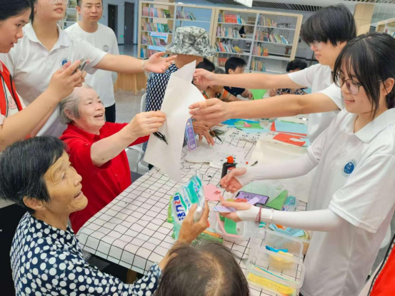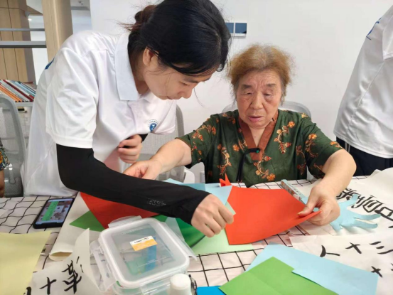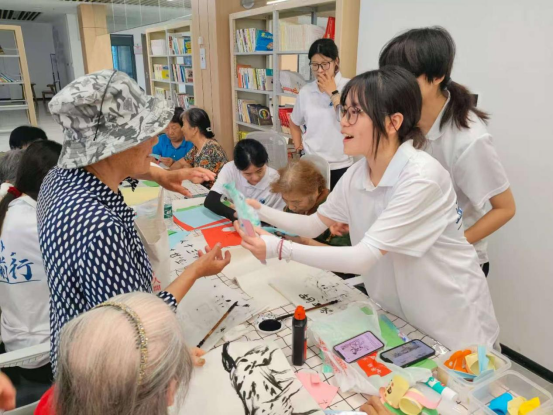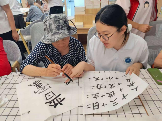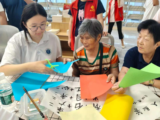 活动现场,书法、剪纸、折纸三大传统艺术体验区热闹非凡。实践队队员与社区工作者共同指导老人挥动毛笔,书写吉祥字;、,组织老人们进行组合找字以及手指树小游戏,讲授剪纸、折纸技巧。一张张彩纸在大家手中化作欢乐有趣的剪纸作品。一个个充满传统韵味的作品,不仅激发了居民对传统文化的热爱,更增进了邻里间的交流互动。