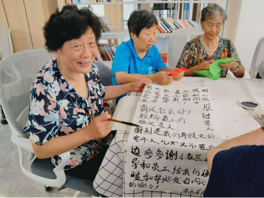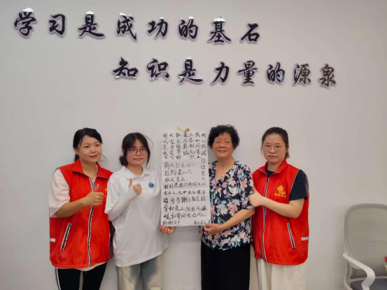 在活动过程中,一位奶奶的真挚话语成为了活动中的暖心亮点。奶奶有感而发书写道:“新城社区是我家,大家都爱它。社区领导好,员工真诚,工作耐心热诚如同亲人。新城社区好,领导员工们胜过亲人,特别是我们年纪大的老年人,儿女又不在身边,多多谢谢社区领导和员工对我们的温暖和帮助,发自内心的谢谢。”奶奶朴实的话语,不仅道出了对社区工作的高度认可,也体现了居民对社区深深的归属感以及被实践队的暖心服务所感动。