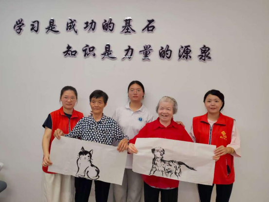 此外,志愿者中的绘画爱好者现场为老人绘制水墨画。他们以细腻的笔触勾勒出老人们喜爱的猫咪,熊猫,斑点狗,将这份温暖瞬间定格成珍贵的艺术作品,深受老人们喜爱。
