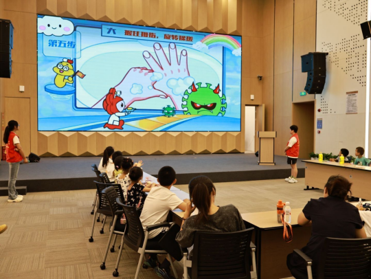 为了让小朋友们更好地理解和掌握,实践队员还借助人体模型,现场演示心肺复苏术和海姆立克法的操作步骤,对于七步洗手法,实践队员则通过趣味口诀和互动游戏,让小朋友们在欢乐的氛围中记住正确的洗手步骤,养成良好的卫生习惯。