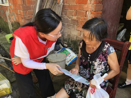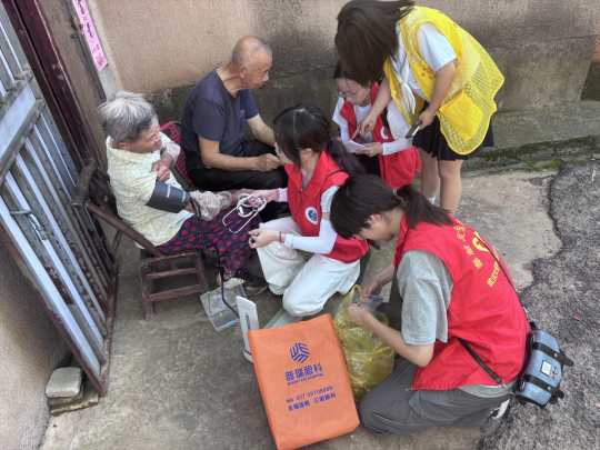 活动当日,实践队兵分两队前往湖畔、新城社区,走访慰问脱贫老人、脱贫户家庭。实践队员与居民们谈心交流,送上慰问品和健康知识宣传单,并为他们测量血压、血糖传递浓浓的关爱之情。居民在实践队员引导下填写《健康问卷调查表》,反馈对自身健康状况的认知和医学健康知识的了解,向实践队员了解科学保养知识。