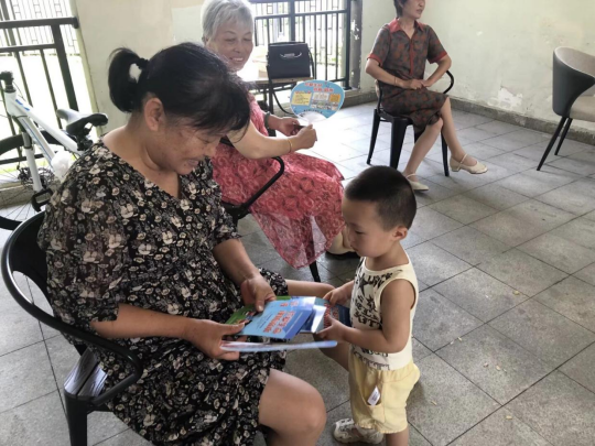 会后,实践队队员们分组给居民们分发防溺水安全手册,并进行知识教育。