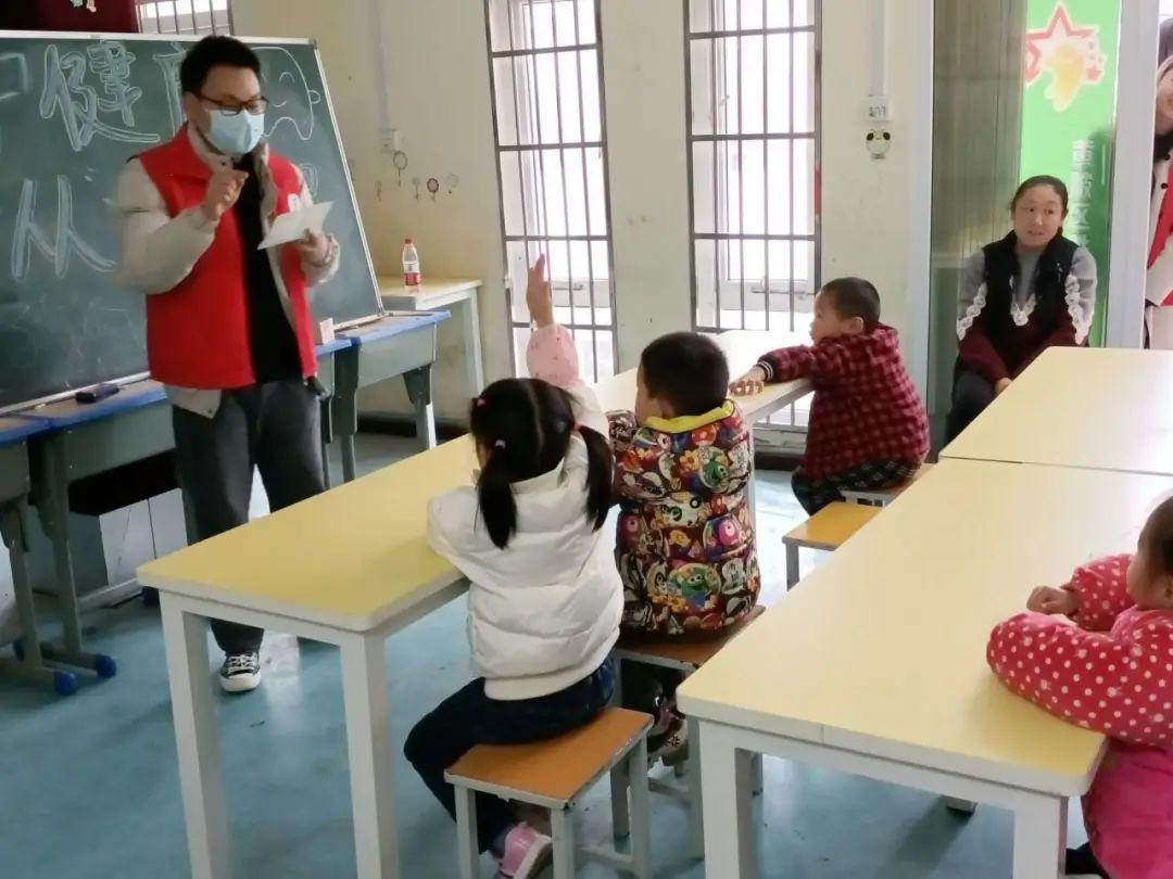 现场,孩子们认真听讲,积极响应和回答程旭提出的口腔知识问答。