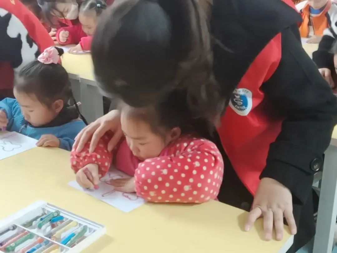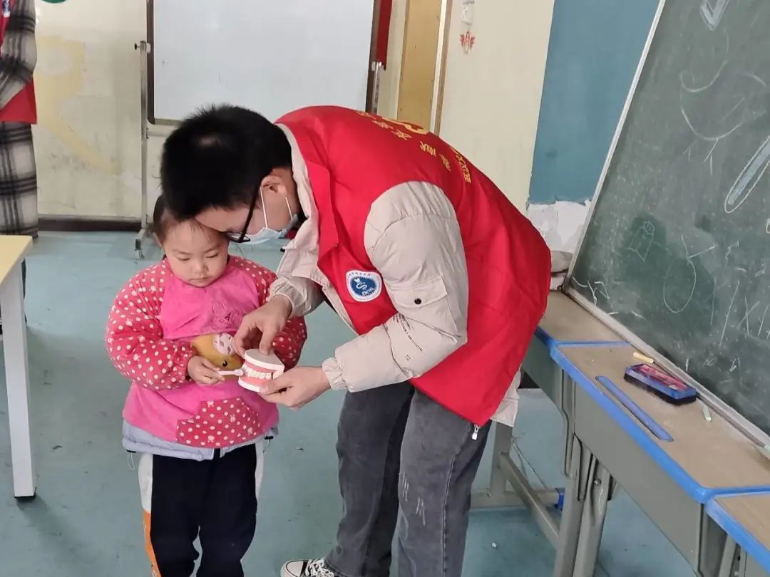 志愿者们通过情景剧表演方式向孩子们科普了口腔健康的重要性,利用口腔模型和牙刷等道具手把手教孩子们如何正确刷牙。与此同时,志愿者们引导孩子用彩笔绘出了孩子们心目中的牙齿,并教引正确、健康牙齿的画像。
