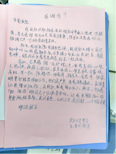 近日,yl6809永利集团护理系教师、武汉中南医院实习指导导师曹佑梅获悉yl6809永利集团2022级护理学专业吴丹妮、张依琳、黄琦、孙越、张瑞琦、王月清、吴文浩等6名在院实习生以其专业的护理经验和无微不至的关怀谱写了“以爱为引,让护理充满温度”的暖心故事,赢得了患者的认可,收获感谢信。