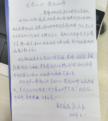 通过耐心疏导,史阿姨的心境犹如拨开云雾,这才放下心来。他的行动也收获了病患的感谢和赞赏。