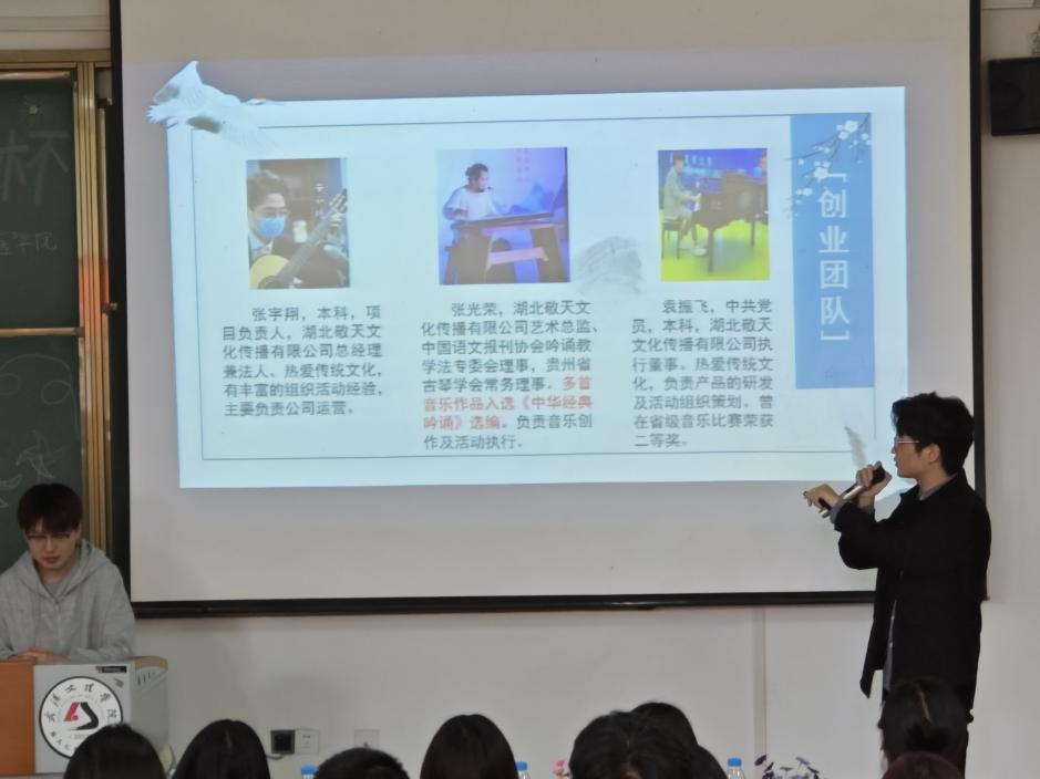 本次比赛分选手阐述、答辩和评委点评三个部分。参赛团队在规定时间内依次分别从背景调研、产品创新、市场分析、团队构成、营销计划、财务分析等角度对项目进行了详尽的展示和阐述并回答了评委老师的提问。