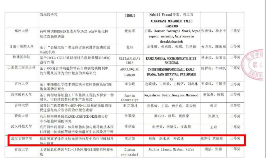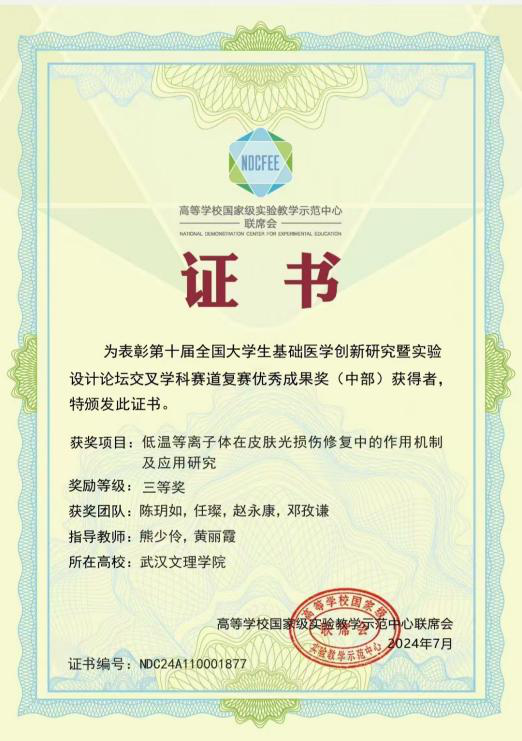 近日,第十届全国大学生基础医学创新研究暨实验设计论坛各赛道复赛落下帷幕。本届大赛吸引了来自204所高校的876支队伍,共计3000余名师生参加。yl6809永利集团熊少伶老师、黄丽霞老师指导项目“低温等离子体在皮肤光损伤修复中的作用机制及应用研究”入围复赛并在激烈角逐中荣获三等奖!