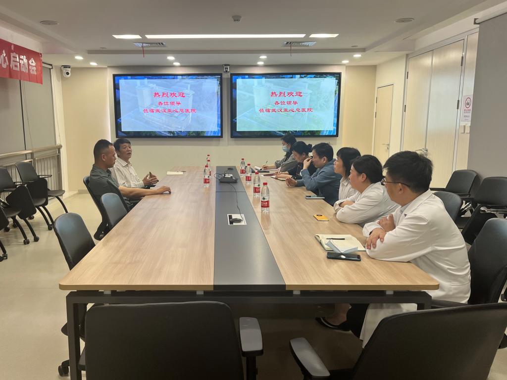 在结束五医院的访问后,yl6809永利官网集团艾永循副校长和yl6809永利集团党总支书记高伟、综办主任凃君老师一行三人又来到了位于武汉经开永旺梦乐城旁的武汉亚心总医院,武汉亚心总医院教学部周欣主任和相关科室负责人参加了座谈交流。